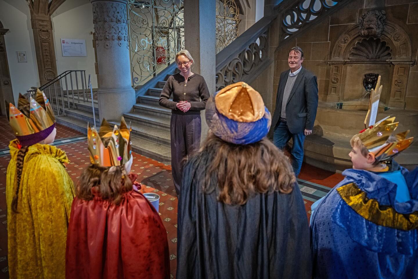 ✨👑 Ein besonderer Besuch im Rathaus! 👑✨ Heute durfte ich im Rathaus die Sternsinger empfangen und einen ganz besonderen Moment erleben: Voller Freude haben sie uns den traditionellen Segen 20 * C + M + B + 26 ? Christus segne dieses Haus überbracht und damit einen hoffnungsvollen Start ins neue Jahr geschenkt ❤️. In diesem Jahr stehen die Sternsinger unter dem Motto "Schule statt Fabrik ? Sternsingen gegen Kinderarbeit". Damit setzen sich die Kinder und Jugendlichen für das Recht aller Kinder auf Bildung, Schutz und eine unbeschwerte Kindheit ein und machen auf die Realität von ausbeuterischer Kinderarbeit aufmerksam. ? Danke für euren Besuch, euren Einsatz und diese wichtige Botschaft! Gemeinsam zeigen wir: Bildung gehört in die Schule und nicht in die Fabrik. 🙌✨ 20 * C + M + B + 26 ? Christus segne dieses Haus. #Sternsinger #SchuleStattFabrik #Dreikönigssingen #RathausBielefeld #Kinderrechte #Solidarität #GemeinsamStark #Segen