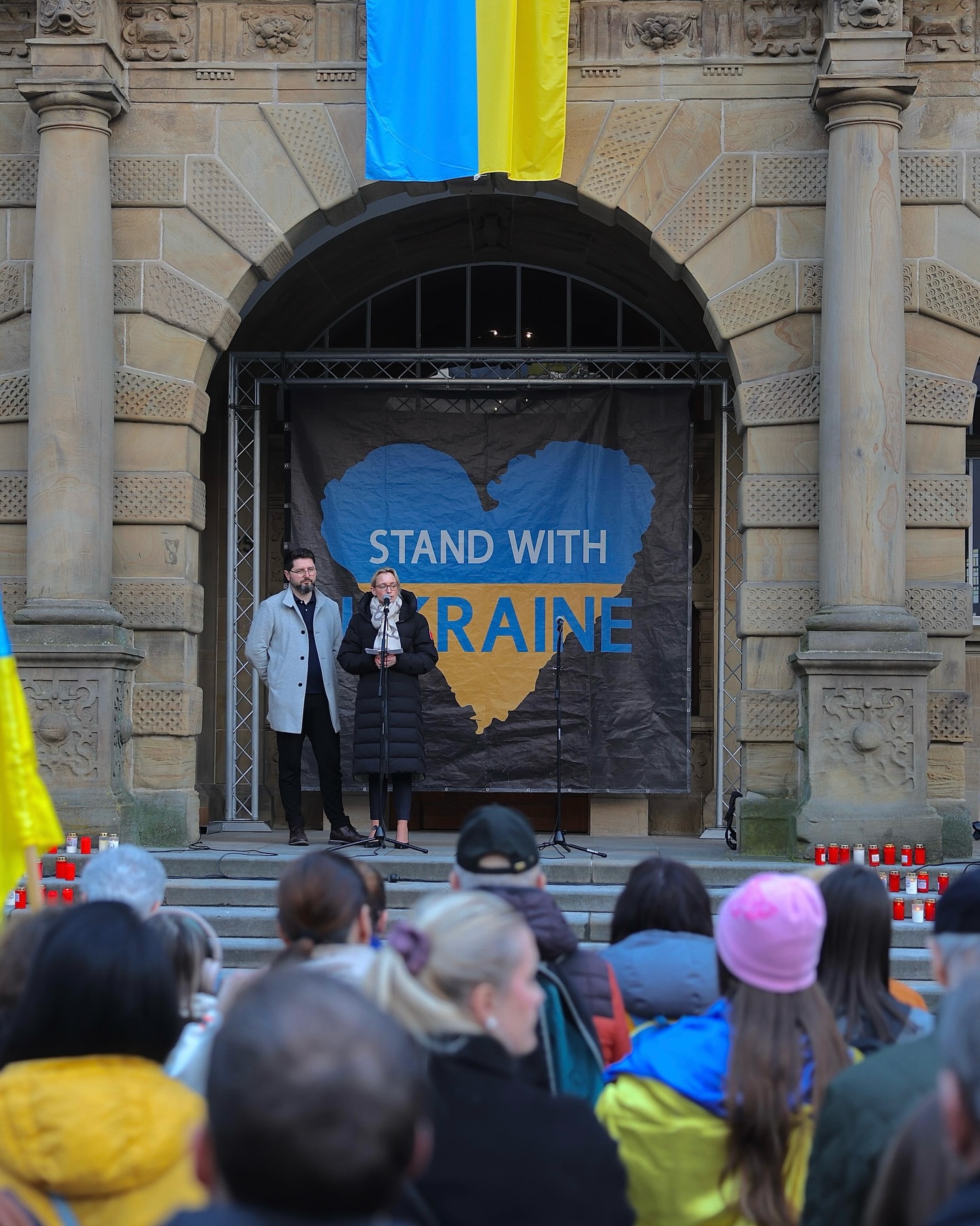 Slava Ukraini! 🇺🇦🤝🇩🇪 👉 Vier Jahre nach Beginn des russischen Angriffskriegs wurde bei der Demonstration gestern vor dem Alten Rathaus erneut deutlich, was dieser Krieg täglich bedeutet: Leid, Entbehrung, Schmerz und Trauer. Ukrainische Soldatinnen und Soldaten kämpfen nicht, weil sie wollen, sondern weil sie ihre Freiheit, ihre Familien und die Zukunft ihres Landes verteidigen und damit auch unsere europäische Friedensordnung schützen. Deutschlands Haltung ist klar 🇩🇪: Die Ukraine kann sich auf uns verlassen. Unser Ziel bleibt ein gerechter und dauerhafter Frieden aus einer Position der Stärke 🕊️. Wir stehen fest an der Seite der #Ukraine 🇺🇦 . #bielefeld